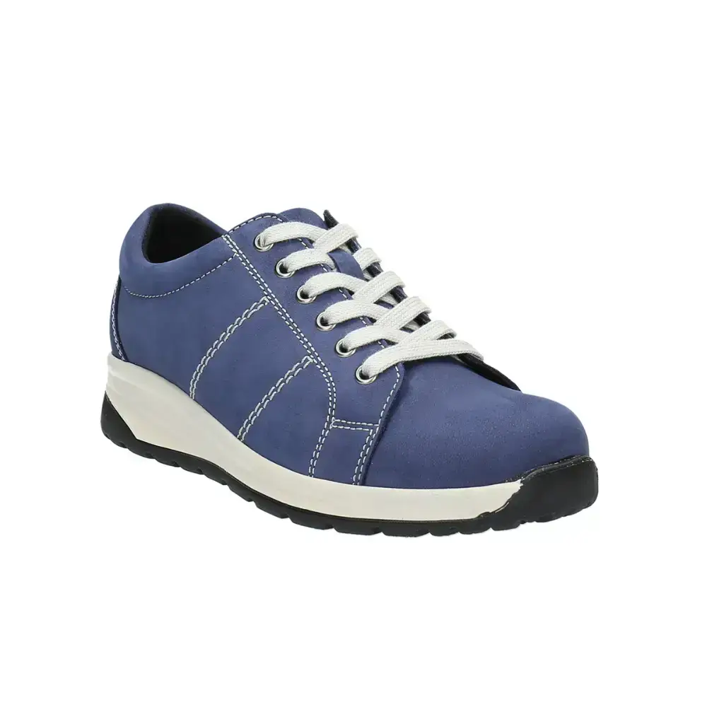 Celoroční diabetická obuv Alma, přírodní useň, šněrování, podešev - PUR/TPUR odpružená s protiskluzem, barva modrá a šedá.