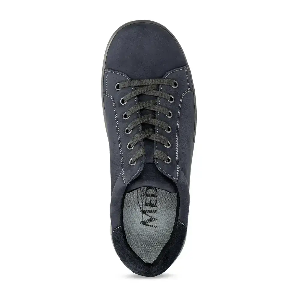 Celoroční diabetická obuv Milan, přírodní useň, šněrování, podešev - PUR/TPUR odpružená s protiskluzem, barva modrá a šedá.