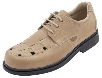 Letní diabetická obuv (diaobuv), model s větracími otvory, useň, šněrování, odlehčená podešev s vylepšenými protiskluznými vlastnostmi, barva přírodní světle béžová.