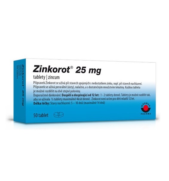 Zinkorot je léčivý přípravek obsahující jako léčivou látku zinek, což je stopový prvek potřebný pro biologické procesy v lidském těle. Zinkorot se užívá při stavech spojených s nedostatkem zinku, a to v případech, kdy jeho přísun potravou dostatečně nepokrývá zvýšenou potřebu organismu na příjem zinku, např. při: stavech nachlazení, zvýšené vnímavosti k infekcím, zhoršeném/prodlouženém hojení ran. Zinek je velmi důležitý pro správnou činnost imunitního systému. Pokud se do 14 dnů nebudete cítit lépe nebo pokud se Vám přitíží, musíte se poradit s lékařem. U ostatních stavů spojených s nedostatkem zinku (při zvýšené vnímavosti k infekcím a při zhoršeném/prodlouženém hojení ran) se přípravek užívá pouze na doporučení lékaře, který rozhodne o délce léčby.