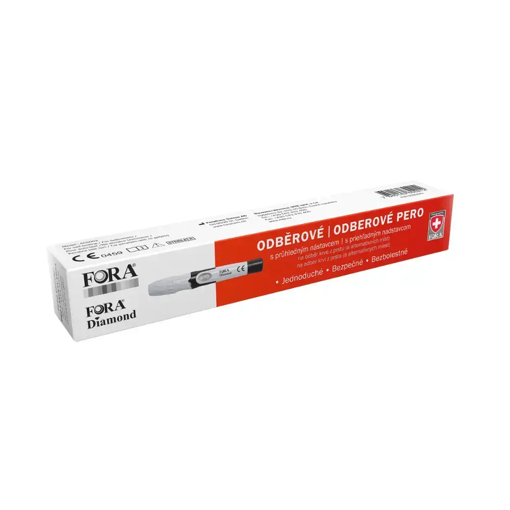 Pero nabízí šest možností nastavení hloubky vpichu. Pero FORA je kompatibilní se všemi lancetami a glukometry značky FORA.